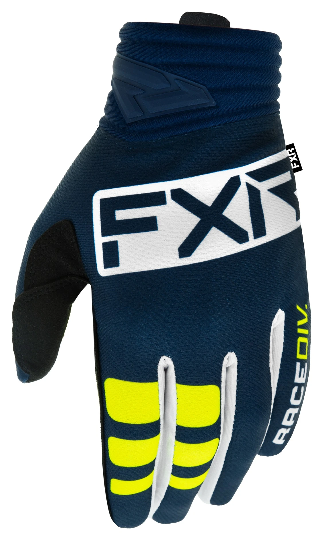 The Prime MX Gloves from FXR feature a slip-on neoprene cuff design, stretch knit fabric for increased durability and secure fit, a single layer Clarino palm for higher dexterity and mesh forucheetes for increased airflow.